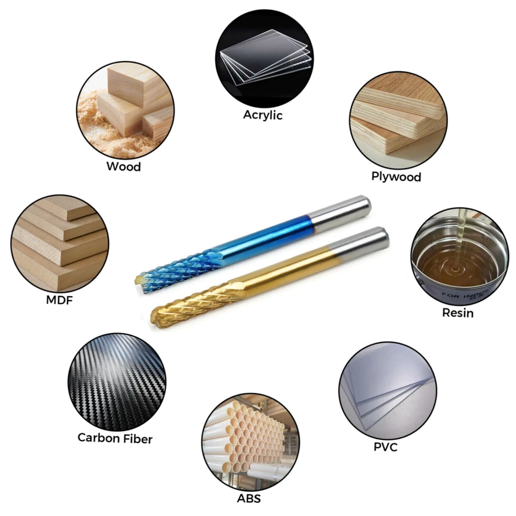Aplicaciones: Perfectas para cortar y grabar en materiales como madera, plástico y metales blandos.