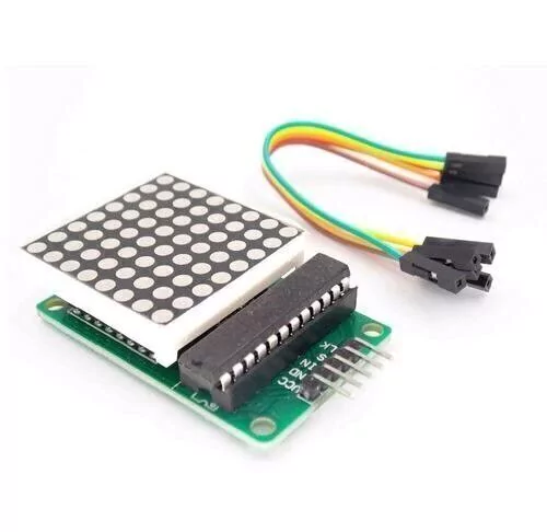 Este módulo integra una matriz de leds de 8x8 y un chip MAX7219, lo que permite trabajar rápidamente con matrices led y utilizando solo 4 cables para la comunicación. Estos módulos se pueden conectar en cascada utilizando un solo bus SPI y mostrar textos o gráficos más grandes.