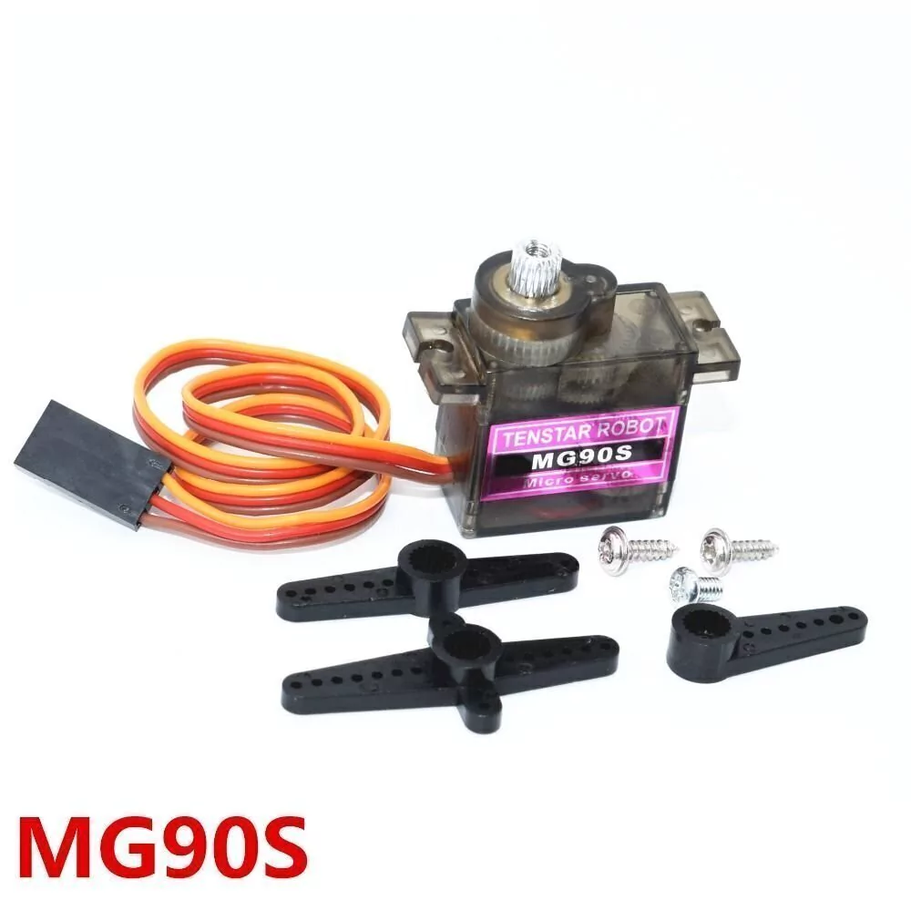 Servomotor de tamaño pequeño ideal para proyectos de bajo torque y donde se requiera poco peso. Posee engranajes de metal que le permiten entregar mayor torque y resistir mejor las cargas. Puede rotar aproximadamente 180 grados (90° en cada dirección).